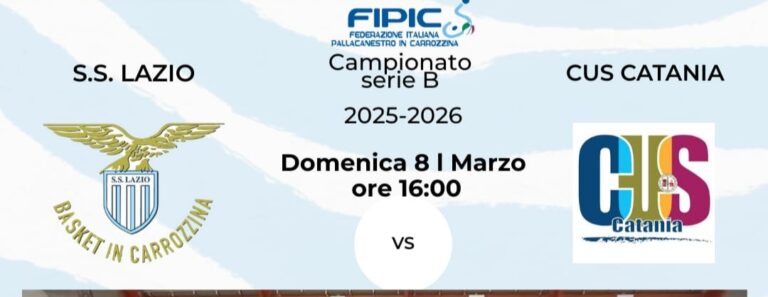 Girone di ritorno campionato Serie B, quinta giornata del campionato per la Lazio basket in carrozzina, 8 marzo biancocelesti giocano ...